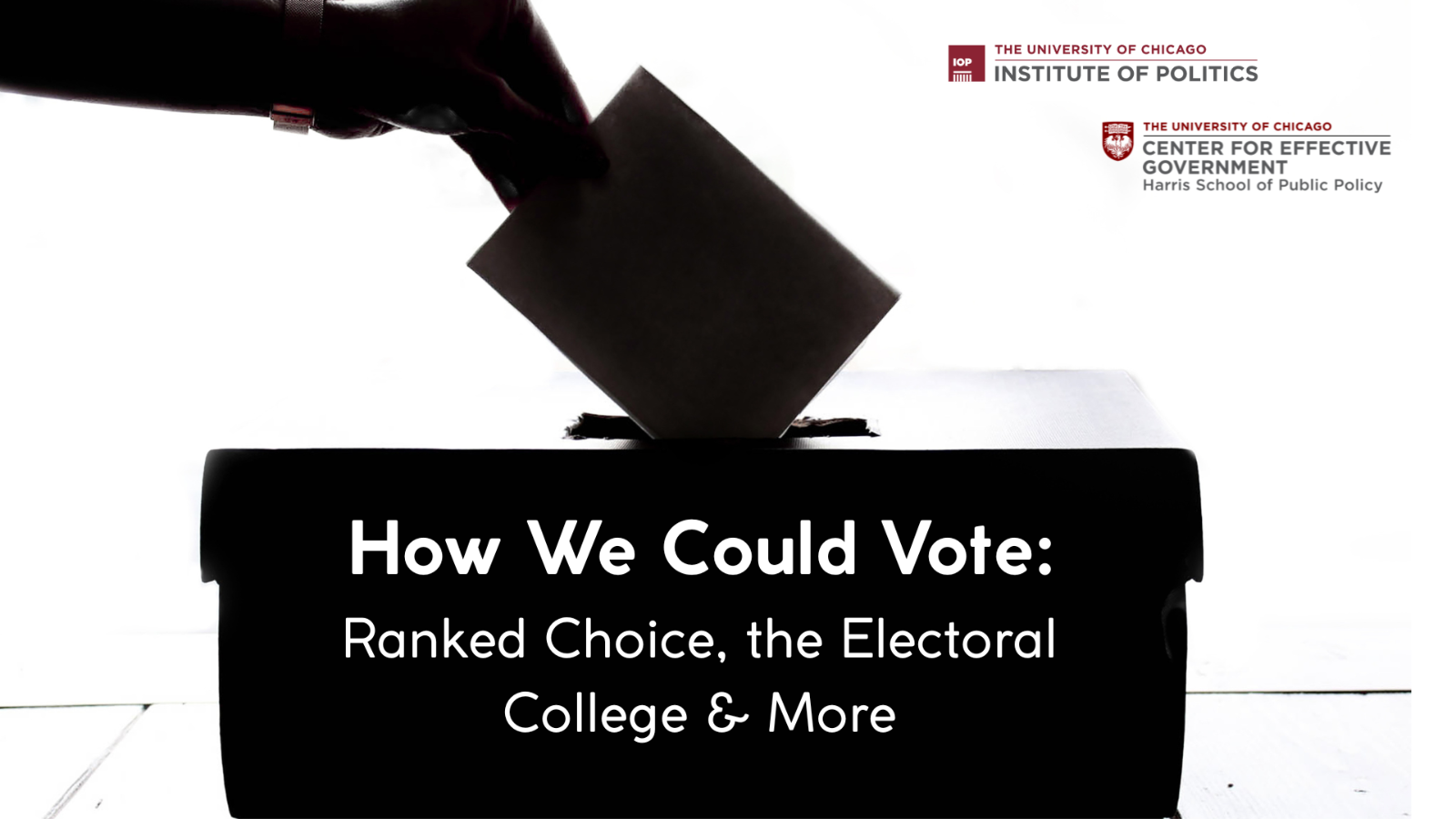 Join the Institute of Politics and the Center for Effective Government for a panel discussion on the changing technologies, methods, and politics of elections in the United States. Hear from a panel of experts and practitioners balance practicality and idealism; security and accessibility where voting is concerned – from election reform legislation, gerrymandering and the electoral college to ID requirements, digital and analog technologies, the prospect of federalized elections, and more.