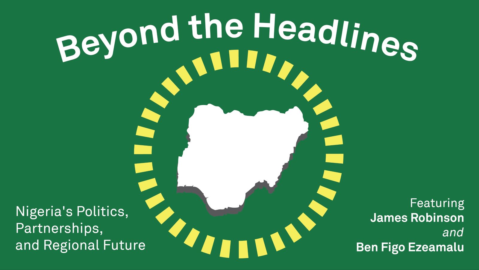 Joining the student-led International Policy Program for a conversation about Nigeria are: Dr. James Robinson,Nobel Prize Laureate and Professor at the Harris School of Public Policy and the Department of Political Science at the University of Chicago; and Mr. Ben Figo Ezeamalu, the Nigeria chief correspondent for Reuters.
